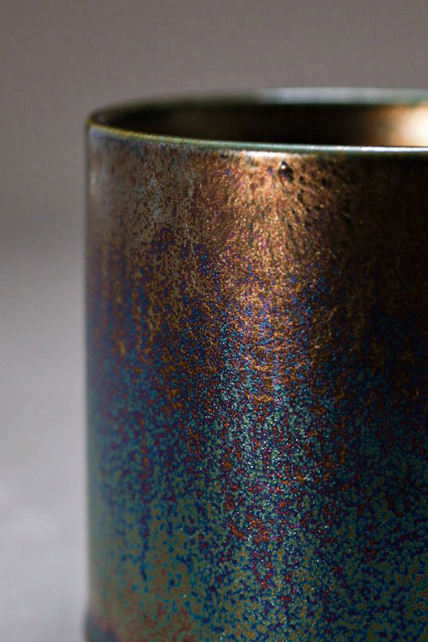 作品はすべて一点ずつ手作業で制作しており、釉薬も結晶や景色の出方に繊細な変化があるものを使用しています。窯入れのタイミングや焼成条件など、さまざまな要因によってサイズや色味、表情、肌質、濃淡に個体差が生じることがございます。