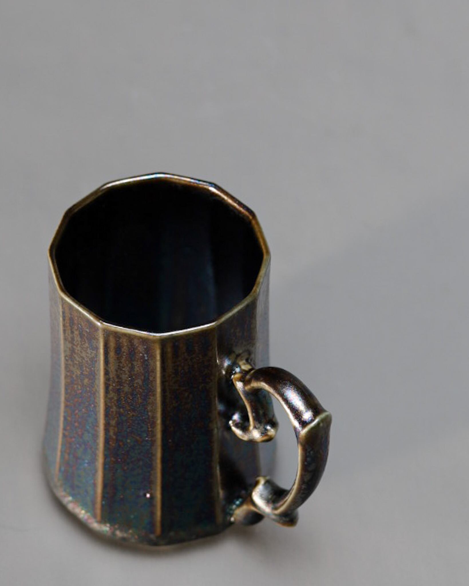 作品はすべて一点ずつ手作業で制作しており、釉薬も結晶や景色の出方に繊細な変化があるものを使用しています。窯入れのタイミングや焼成条件など、さまざまな要因によってサイズや色味、表情、肌質、濃淡に個体差が生じることがございます。