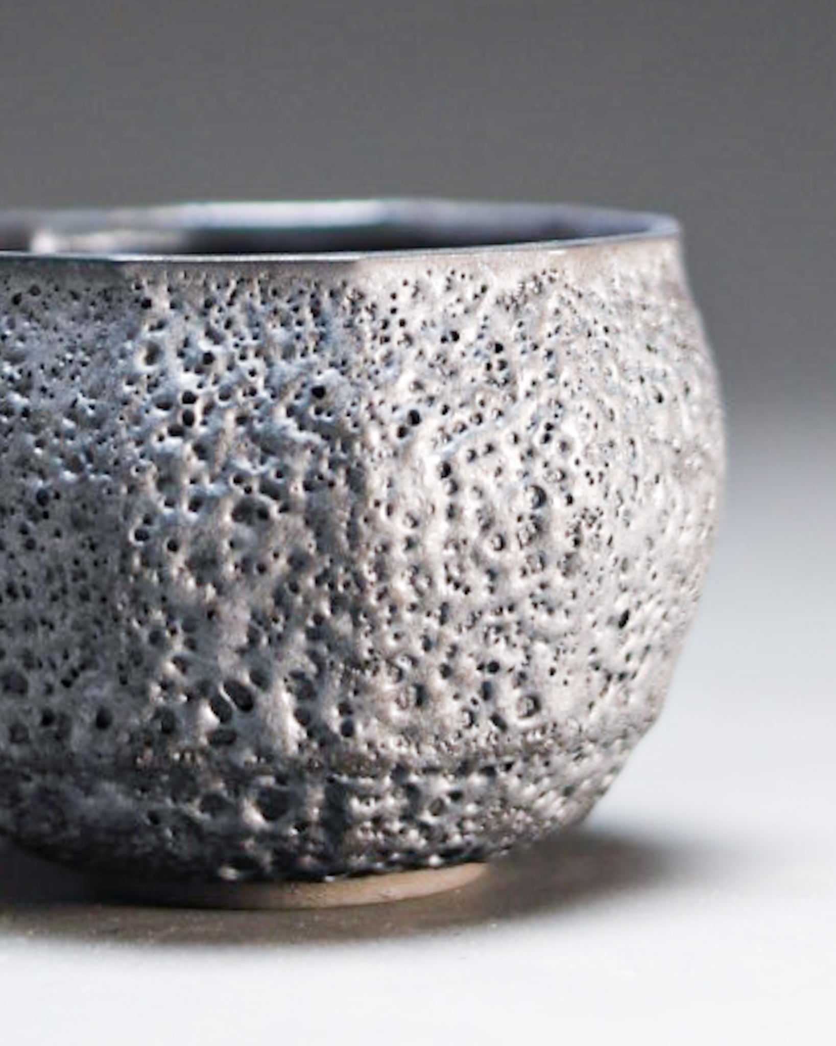 作品はすべて一点ずつ手作業で制作しており、釉薬も結晶や景色の出方に繊細な変化があるものを使用しています。窯入れのタイミングや焼成条件など、さまざまな要因によってサイズや色味、表情、肌質、濃淡に個体差が生じることがございます。