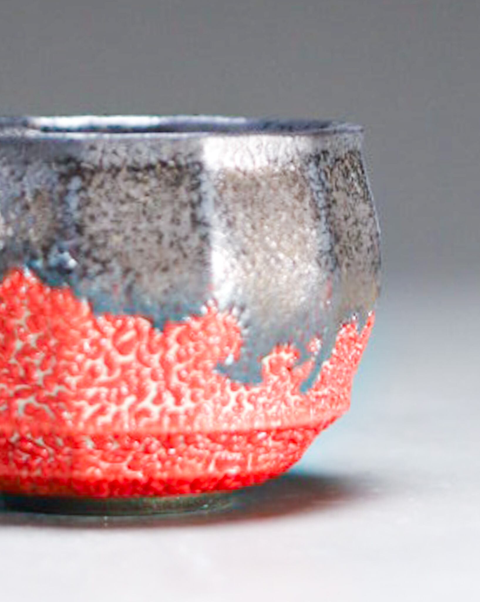 作品はすべて一点ずつ手作業で制作しており、釉薬も結晶や景色の出方に繊細な変化があるものを使用しています。窯入れのタイミングや焼成条件など、さまざまな要因によってサイズや色味、表情、肌質、濃淡に個体差が生じることがございます。