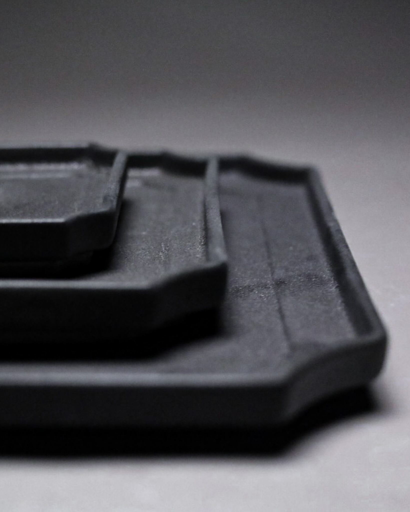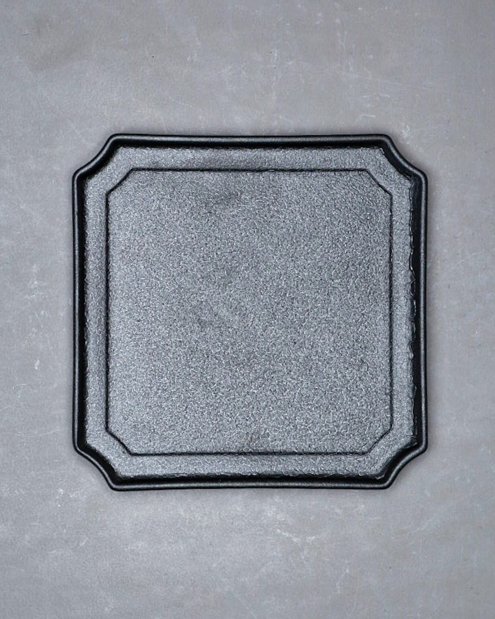 シンプルな四角形にリズムとアクセントを加え、和洋を問わず料理を引き立てる器に仕上げています。