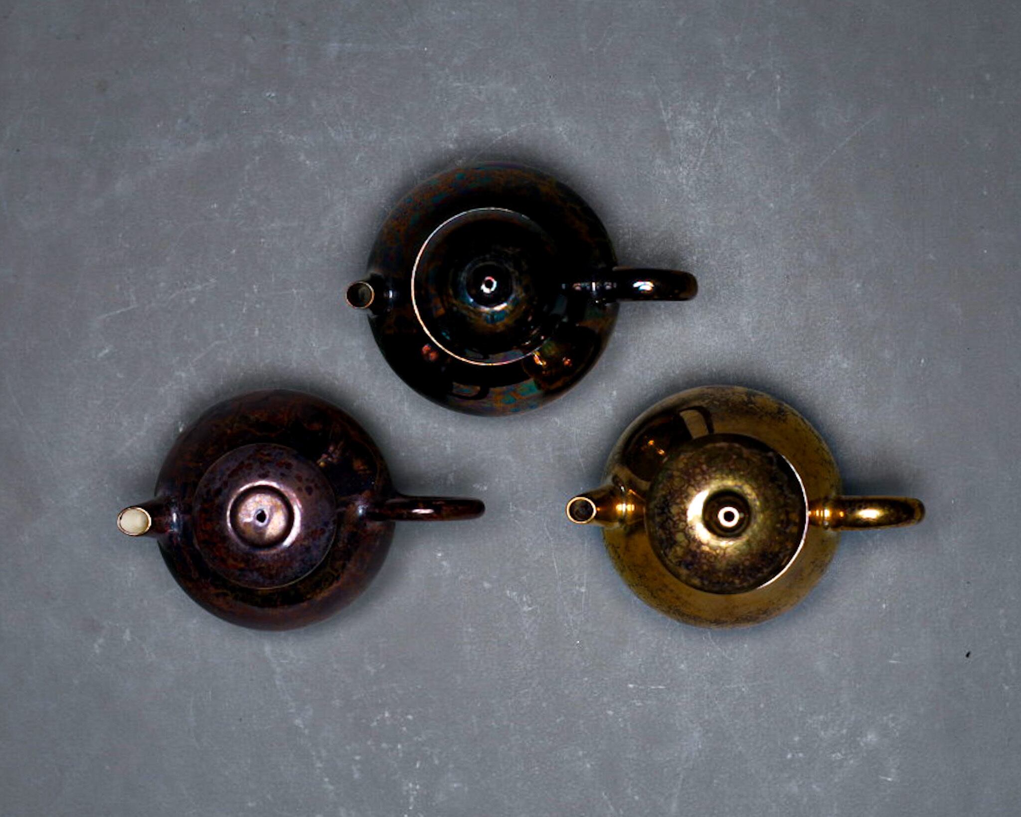 作品はすべて一点ずつ手作業で制作しており、釉薬も結晶や景色の出方に繊細な変化があるものを使用しています。窯入れのタイミングや焼成条件など、さまざまな要因によってサイズや色味、表情、肌質、濃淡に個体差が生じることがございます。