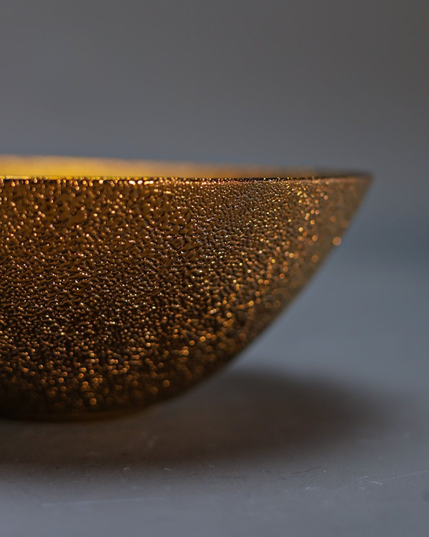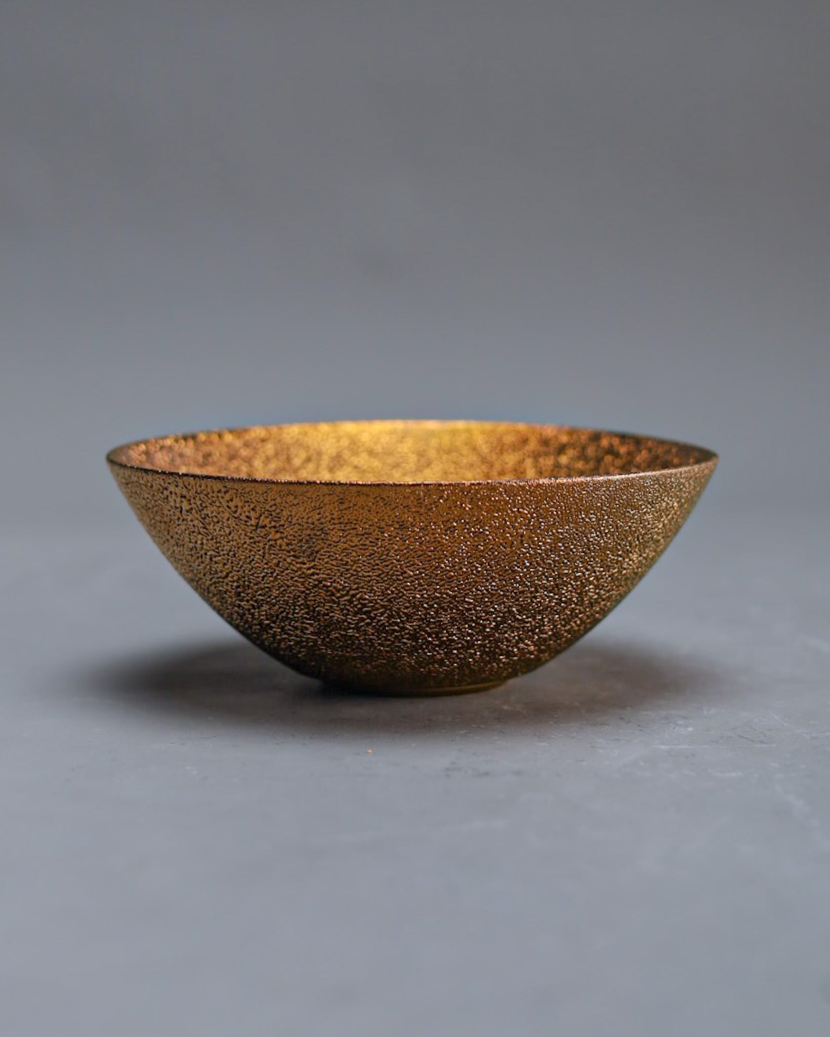 作品はすべて一点ずつ手作業で制作しており、釉薬も結晶や景色の出方に繊細な変化があるものを使用しています。窯入れのタイミングや焼成条件など、さまざまな要因によってサイズや色味、表情、肌質、濃淡に個体差が生じることがございます。