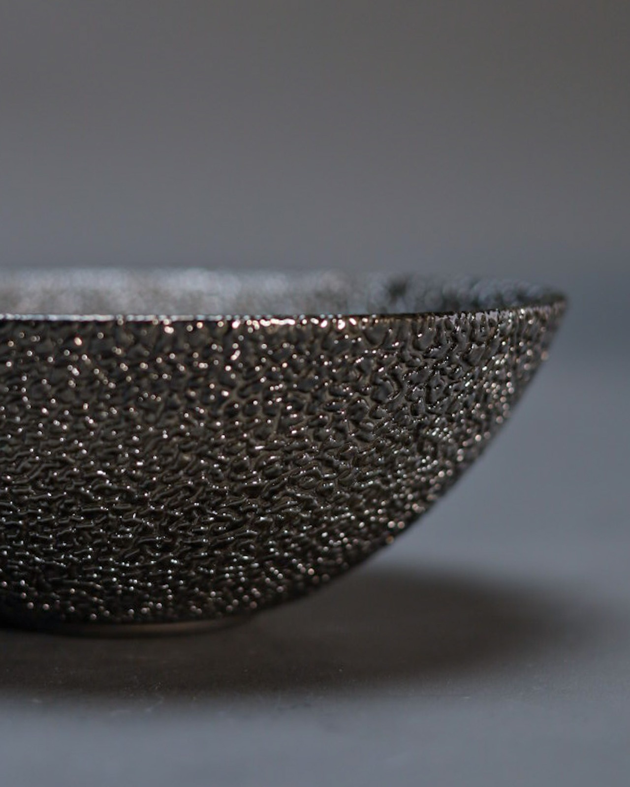 作品はすべて一点ずつ手作業で制作しており、釉薬も結晶や景色の出方に繊細な変化があるものを使用しています。窯入れのタイミングや焼成条件など、さまざまな要因によってサイズや色味、表情、肌質、濃淡に個体差が生じることがございます。